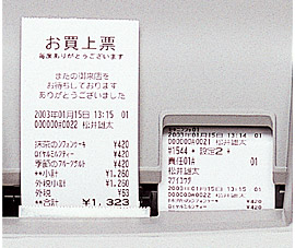 | 毎秒約13行の速さでレシートを静かにプリントアウト。感熱印字方式により、文字だけでなく店名ロゴなどもきれいにプリントできます。レシートと同時に営業記録も印字できる2シートタイプ。領収証発行機能搭載。 |