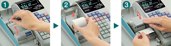 ロール紙の交換は、手軽な3ステップで完了です。 アームを引き上げ、ロール紙を置き、 アームを戻せば終了。混雑時などでも、 すばやく交換できるので、スムーズな接客が行えます。
