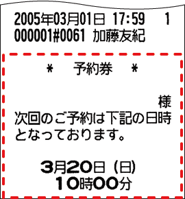 来店・来院時間を印字した予約券を発行できます。病院で、次回の診療予約をお知らせする場合などに便利です。