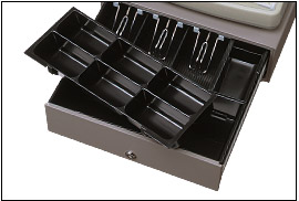 コンパクトサイズでありながら収納性に優れたドロアには、3紙幣6硬貨を分けて収納できます。使わない時は、安全のためロックしておくことができます。 (フリースペース付、コインケース分離型、紙幣仕切板同梱) |